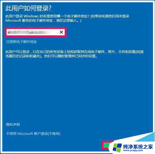 4、在打开的此用户如何登录?窗口,输入登录用户的电子邮件地址,再点击:下一步;