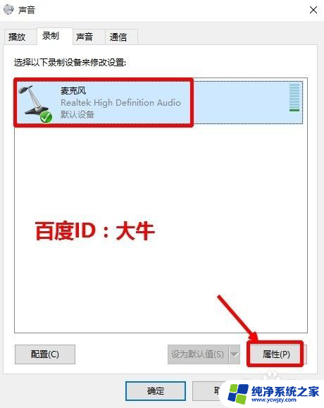 11.然后我们选择麦克风,点击这里的属性按钮打开。