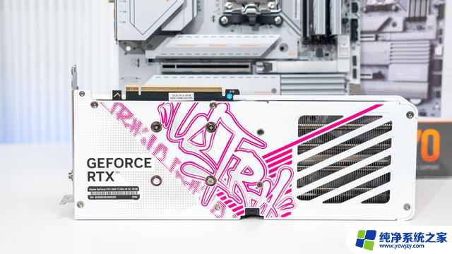 显卡金属背板上采用了桃粉色的涂鸦设计,Ultra字体装饰其中。背板与正面相呼应,显卡整体都充满了嘻哈元素设计。